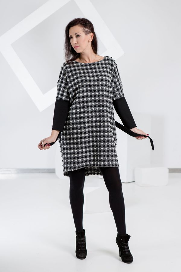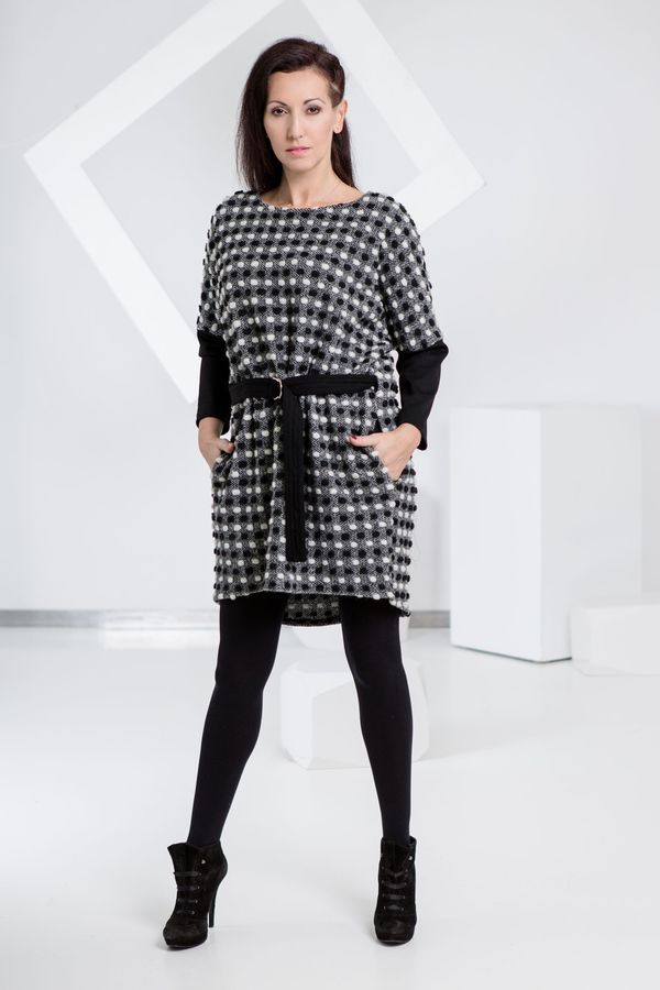 Ciepła sukienka/tunika z przepiękną fakturą wełnianej dzianiny. Prosty krój z kieszeniami i paskiem, który możesz wiązać na kilka sposobów dzięki dwóm otworom po bokach sukienki